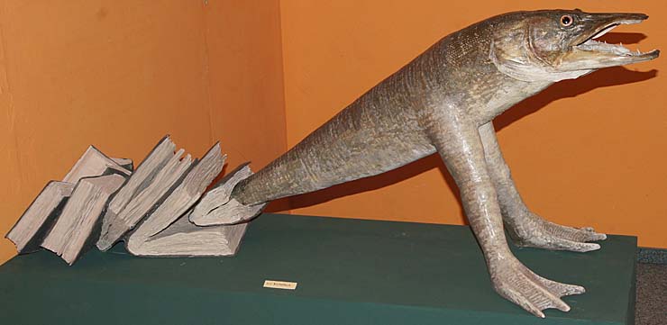 mit dem Buch fest verbunden, überrascht den "Leser" und