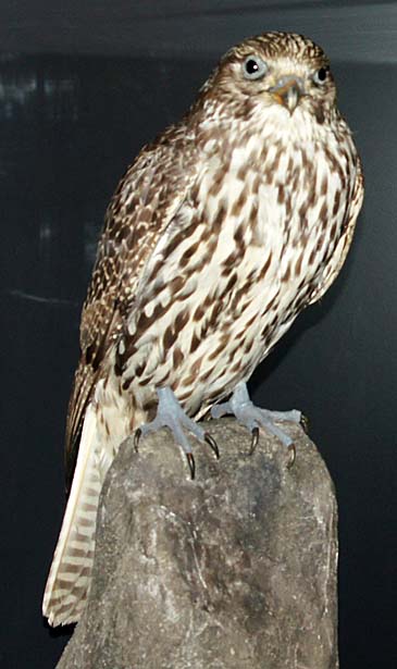 Gerfalke Falco rusticolus Grönland, 1905 Die größte Falkenart ist in allen Polargebieten der Nordhalbkugel verbreitet. Hauptnahrung sind Alpen- und Moorschneehühner. Gerfalken bauen keine eigenen Nester, sondern nutzen Felsenmulden oder die Horste anderer großer Vögel. Gerfalken waren und sind besonders geschätzte Beizvögel in der Falknerei. Deshalb werden sie bis heute illegal gehandelt. |