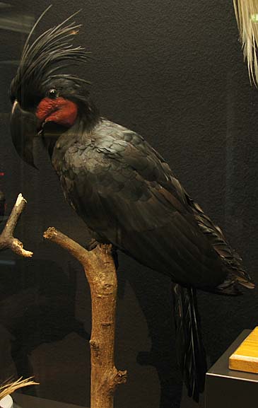 aterrimus Australien, 1908 Der Ara- oder Palm-Kakadu lebt in Neuguinea, Nordost-Australien und auf einigen benachbarten Inseln. Er ist die größte Papageien-Art Australiens. Neben Wäldern werden auch baumbestandene Savannen besiedelt, wenn geeignete Bäume für die über einen Meter tiefen und bis zu 60 cm im Durchmesser großen Bruthöhlen vorhanden sind. Hauptnahrung sind Früchte, Nüsse und Samen. |