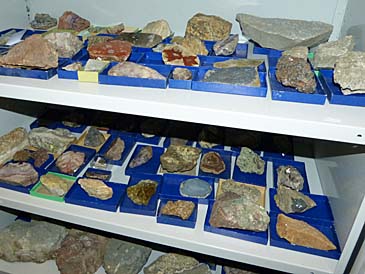 Blick in den Arbeitsraum des Geologen sowie in einen Magazinschrank der