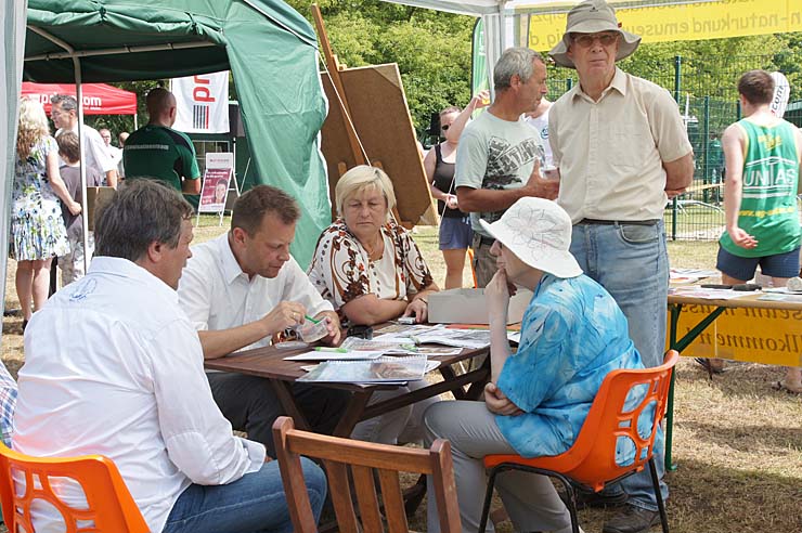 sich im lockeren Gespräch am Stand des Fördervereins