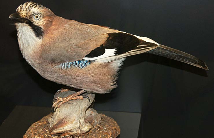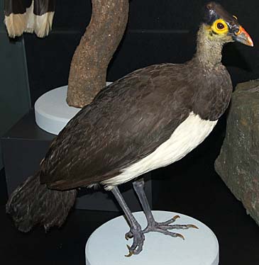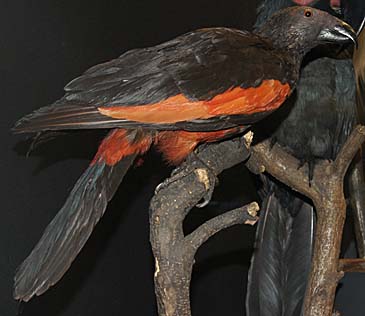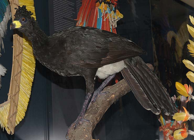 Kurzlappen-Schirmvogel Cephalopterus ornatus Pampayaco (Peru), 1829, gesammelt von Eduard Poeppig Der Kurzlappen-Schirmvogel gehört zu den Schmuckvögeln, die nur in Mittel- und Südamerika vorkommen. Seine Heimat ist das Amazonasbecken. Dort besiedelt er Waldgebiete entlang der Flüsse und Regenwälder in den unteren Lagen der Anden. Die Nahrung besteht vor allem aus Früchten, Insekten und kleinen Echsen. |