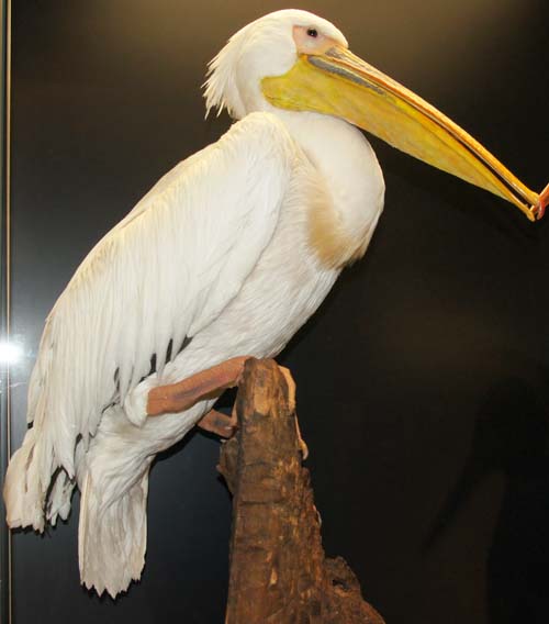 Rosapelikan Pelecanus onocrotalus Rosapelikane brüten in Südosteuropa sowie Teilen Asiens und Afrikas an größeren Gewässern und Meeresküsten. Hauptnahrung sind Fische. Pelikane wurden teilweise stark bejagt, da sie als Nahrungskonkurrenten des Menschen galten und als Naturheilmittel dienten. Darstellungen von Pelikanen finden sich in der christlichen Ikonographie und in verschiedenen Wappen. |
