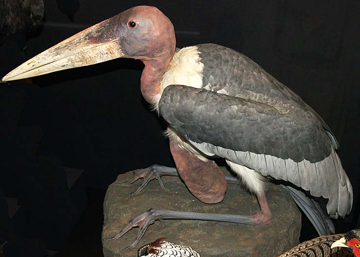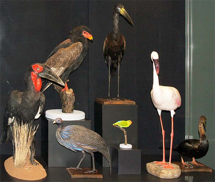 Schwarzer Klaffschnabel Anastomus lamelligerus Westafrika, vor 1868 Diese Storchenart kommt im tropischen Afrika in verschiedenen Feuchtgebieten vor. Bevorzugte Nahrung sind große Süßwasserschnecken, aber auch andere Wirbellose des Süßwassers sowie kleinere Frösche und Fische werden verzehrt. Klaffschnäbel sind oft mit Flusspferden vergesellschaftet, da diese Wasser und Schlamm aufwühlen und so die Nahrungssuche der Störche erleichtert wird. |