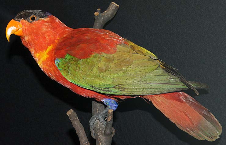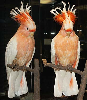 aterrimus Australien, 1908 Der Ara- oder Palm-Kakadu lebt in Neuguinea, Nordost-Australien und auf einigen benachbarten Inseln. Er ist die größte Papageien-Art Australiens. Neben Wäldern werden auch baumbestandene Savannen besiedelt, wenn geeignete Bäume für die über einen Meter tiefen und bis zu 60 cm im Durchmesser großen Bruthöhlen vorhanden sind. Hauptnahrung sind Früchte, Nüsse und Samen. |