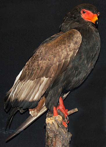 ecaudatus Natal (Südafrika), 1842 Dieser Greifvogel lebt in weiten Teilen Afrikas südlich der Sahara vor allem in Savannen und an Waldrändern. Gaukler ernähren sich vor allem von Kleinsäugern, Vögeln und Reptilien. Die Brutpaare bleiben ein Leben lang zusammen und errichten ihre Nester auf Bäumen und hohen Termitenbauten. Viele afrikanische Völker verehren/verehrten den Gaukler als Kriegervogel, der Sieg oder Niederlage im Kampf voraussagen konnte. |