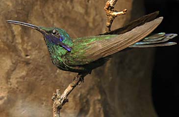 coruscans Venezuela, vor 1868 Kolibris kommen nur in Amerika vor. Es sind etwa 340 Arten beschrieben worden, die unterschiedlichste Lebensräume zwischen Alaska und Feuerland besiedeln. Bekannt sind sie durch ihren Schwirrflug, der ihnen die Nektaraufnahme auch an hängenden Blüten ermöglicht. Der Veilchenohrkolibri lebt an den Andenhängen von Venezuela bis Nordargentinien. |