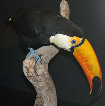 derbianus Pampayaco, Peru, 1829 Diese Tukanart lebt vor allem in den Anden von Südkolumbien bis Nordwestbolivien in subtropischen Regenwäldern bis in 2000m Höhe. Über die Lebensweise ist wenig bekannt, hauptsächlich besteht die Nahrung aus Früchten und Insekten, wie andere Tukane brütet auch der Derby-Arassari wohl in Baumhöhlen. Dieses Exemplar wurde von dem Leipziger Naturforscher Eduard Poeppig während seiner Südamerikareise gesammelt. |