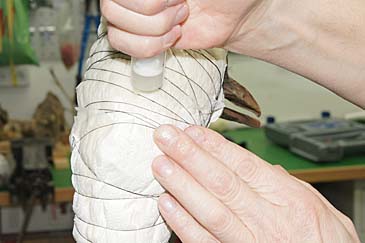 des Trocknens der Haut mit Draht in eine besser Form gezwungen.
