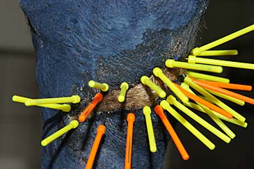 dort, wo die Federn mit Farbe übermalt waren. Mehrmals wurden die