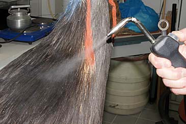Federn mit einem warmen Sprühnebel angefeuchtet und