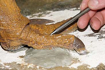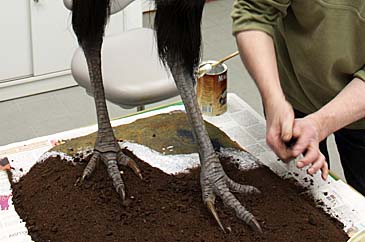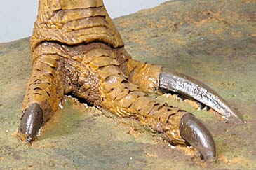 langen Krallen und Zehen waren teilweise im Gipspodest versunken.