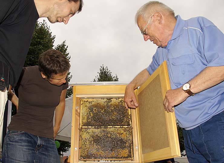 Schaubeute. Zudem verkauften die Imker ihr "Gold" für 5 € das